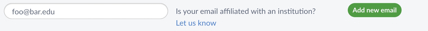 You can then provide your email address, optionally specifying the institution affiliated with that address if applicable.