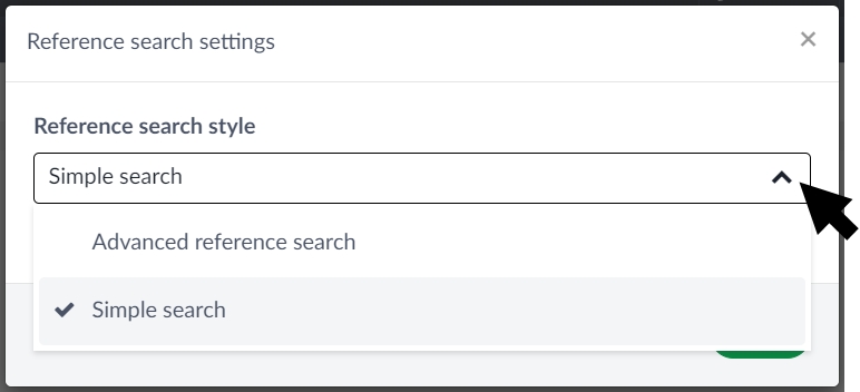 From the Reference search settings window, use the drop-down menu to select your preferred Reference search style.